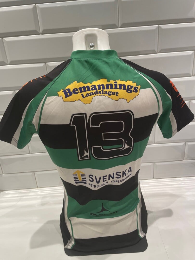 Observera att detta är begagnade tröjor som använts ibland flera säsonger i svenskt seriespel i Rugby och skicket kan variera , vi har försökt klassificera skicket enligt en 5-gradig skala. Prissättningen varierar beroende på skick och vilka nummer som är åtråvärda.